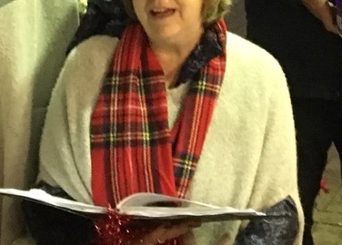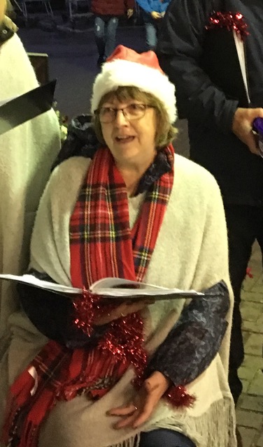 We have one birthday. It is next Tuesday. Maureen Pay one of our Altos and also one of our newest Committee Members. Maureen joined the choir in June 2017. The first photograph is of Maureen singing outside Brambridge Garden Centre and the other is of the “fun games night” we had in May 2019.