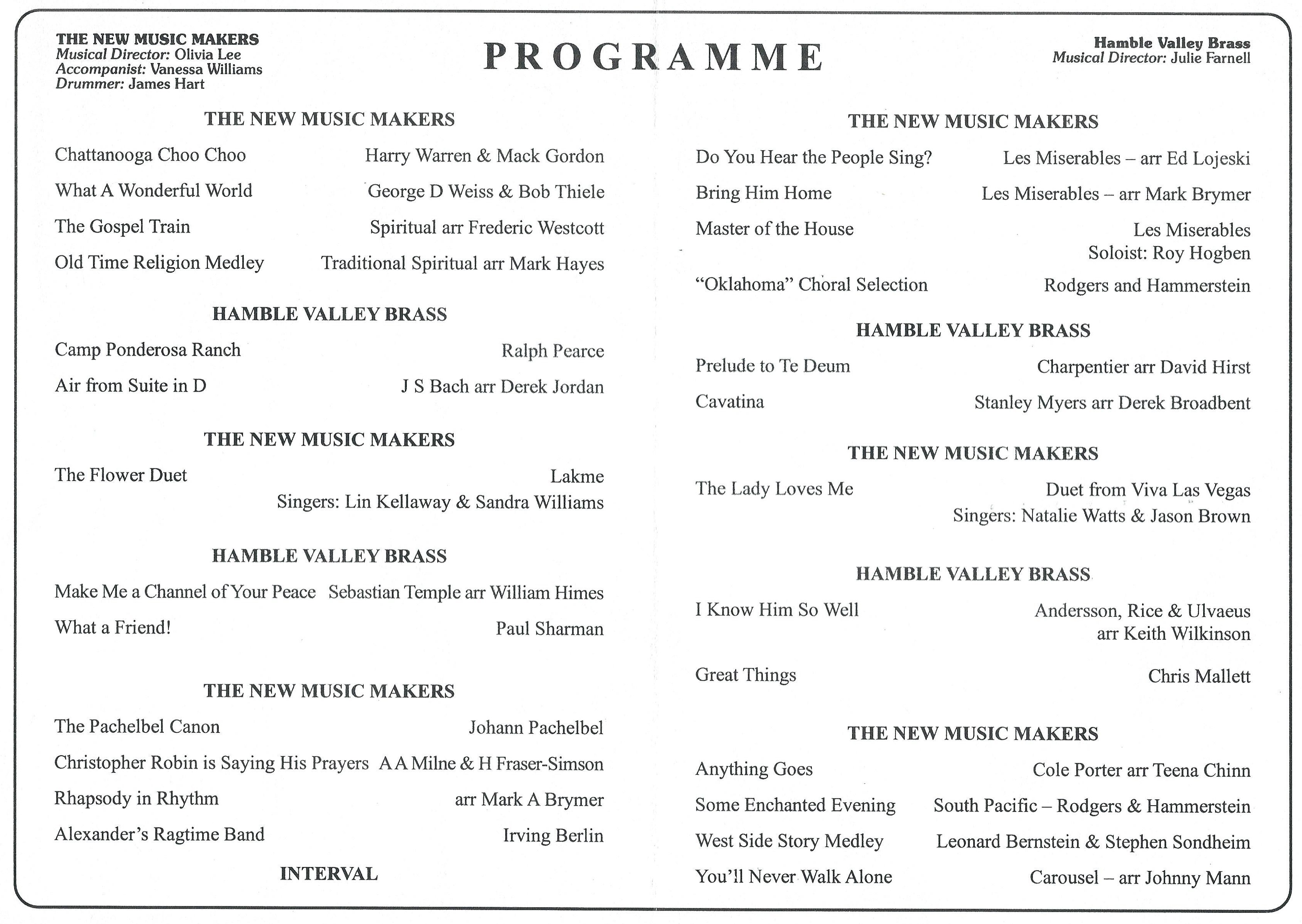 • New Music Makers Musical Repertoire