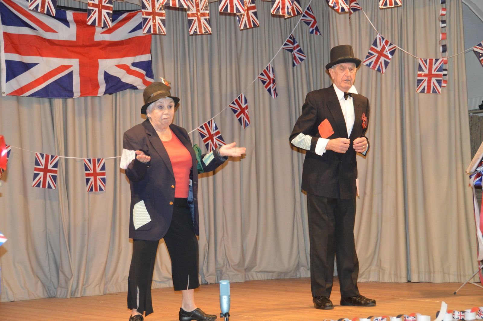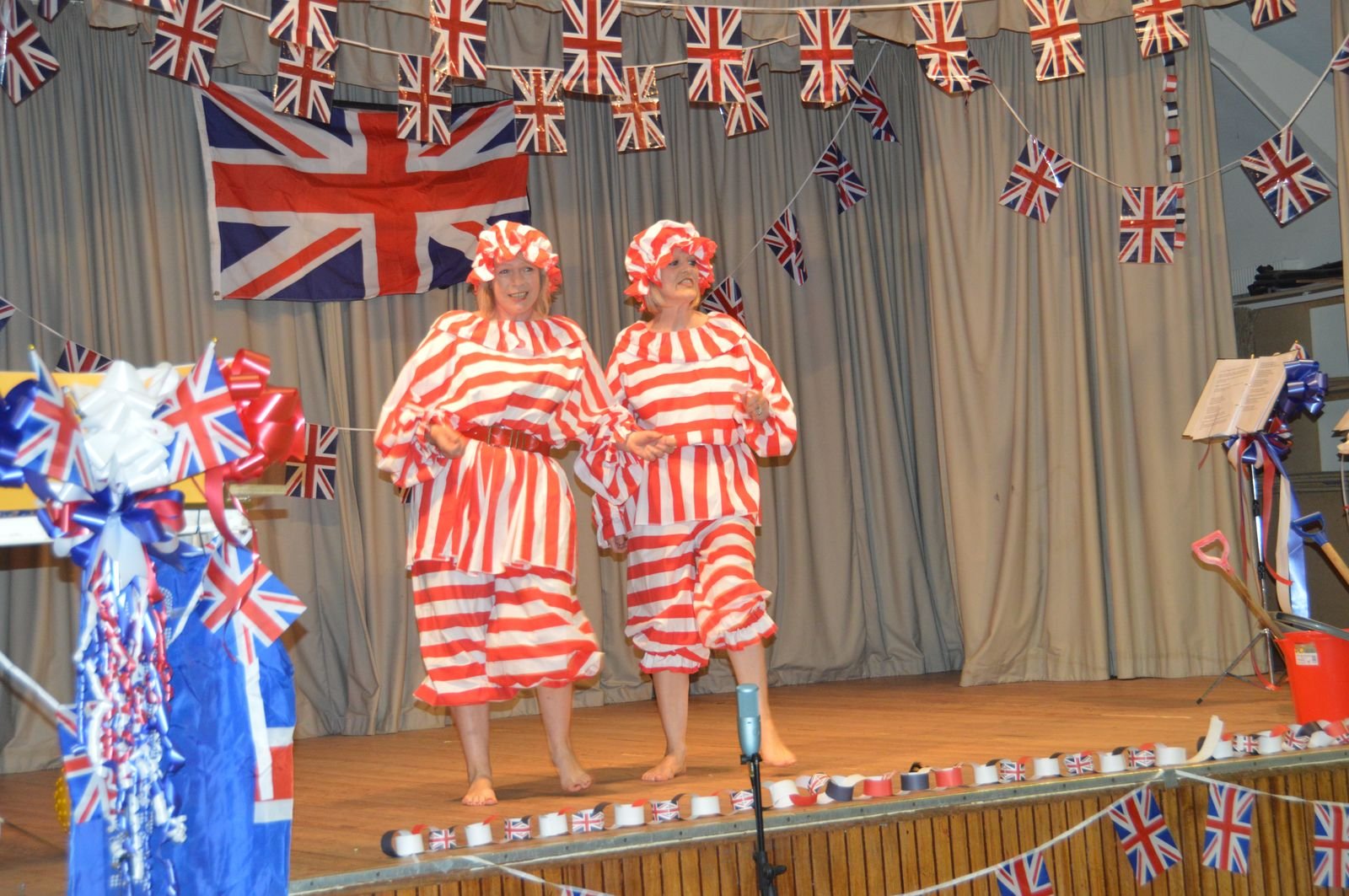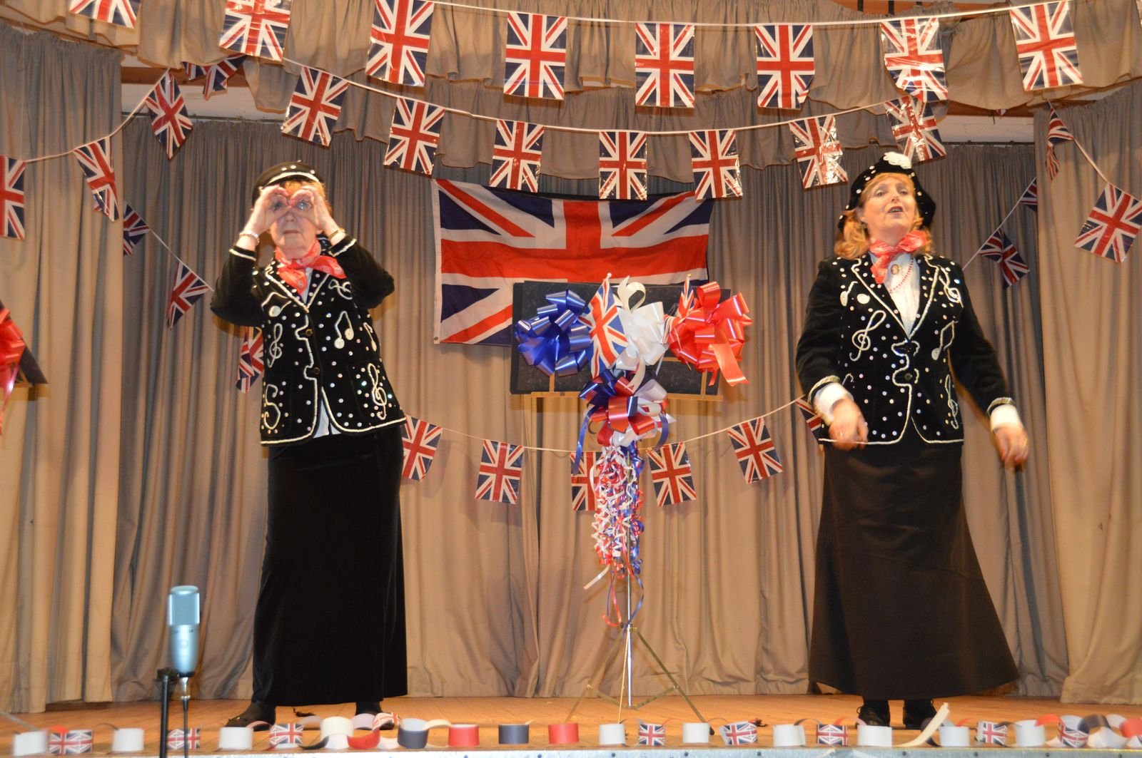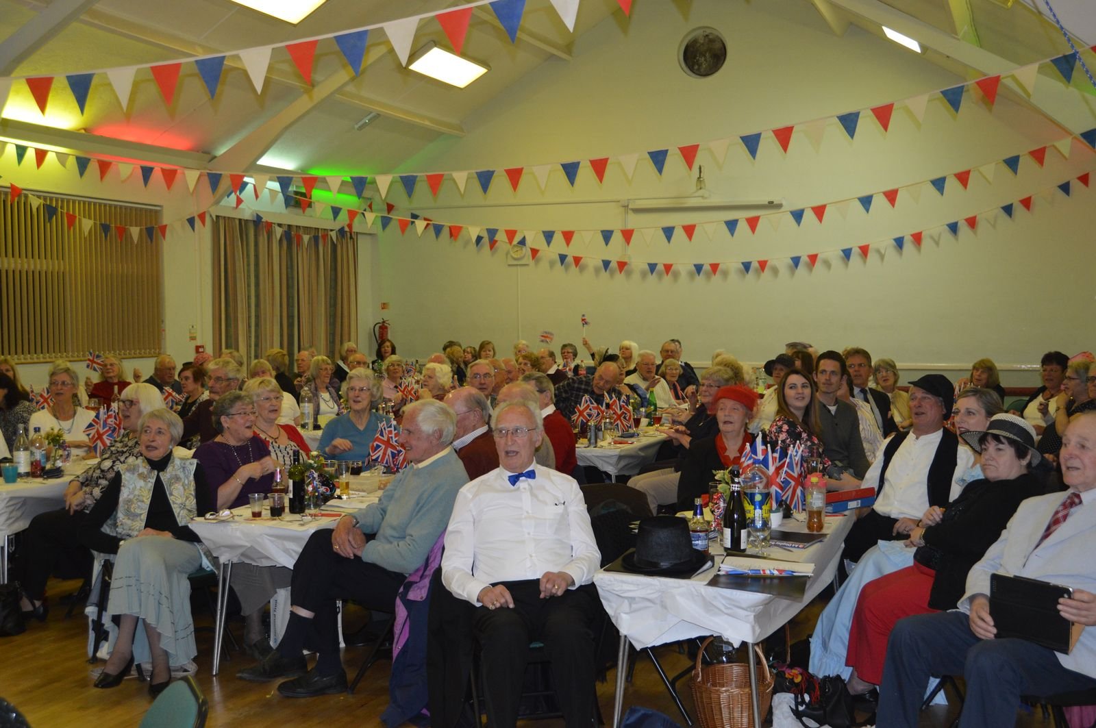 The hall was decorated in the style of a street party. Red, white and blue bunting, together with Union Jack’s and ribbons everywhere. Even the table decorations carried on the theme. It was certainly a splendid sight.