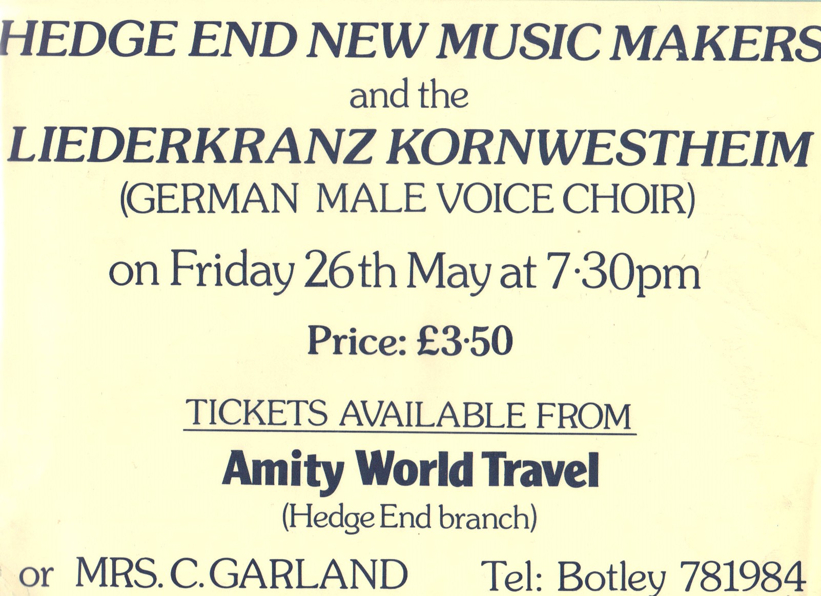 Rehearsals: Thursdays 7:30-9:45pm, Hedge End Methodist Church Hall
