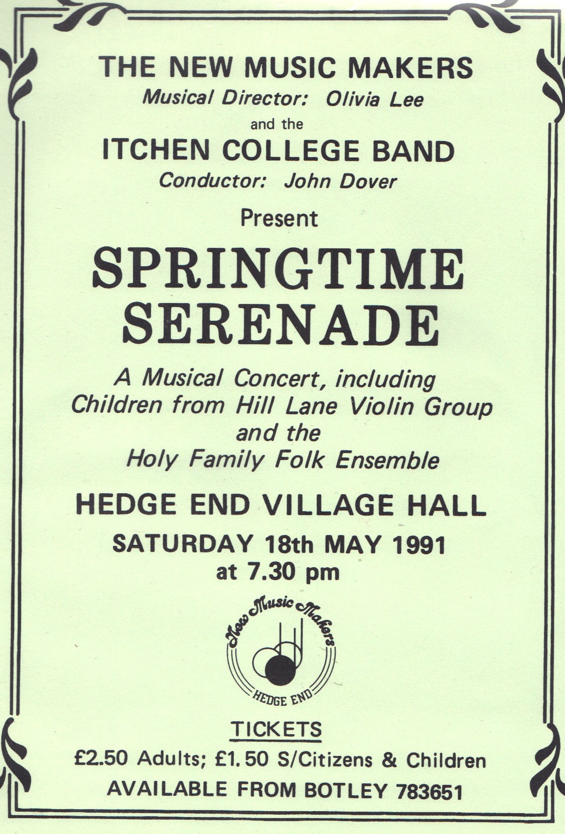 Rehearsals: Thursdays 7:30-9:45pm, Hedge End Methodist Church Hall