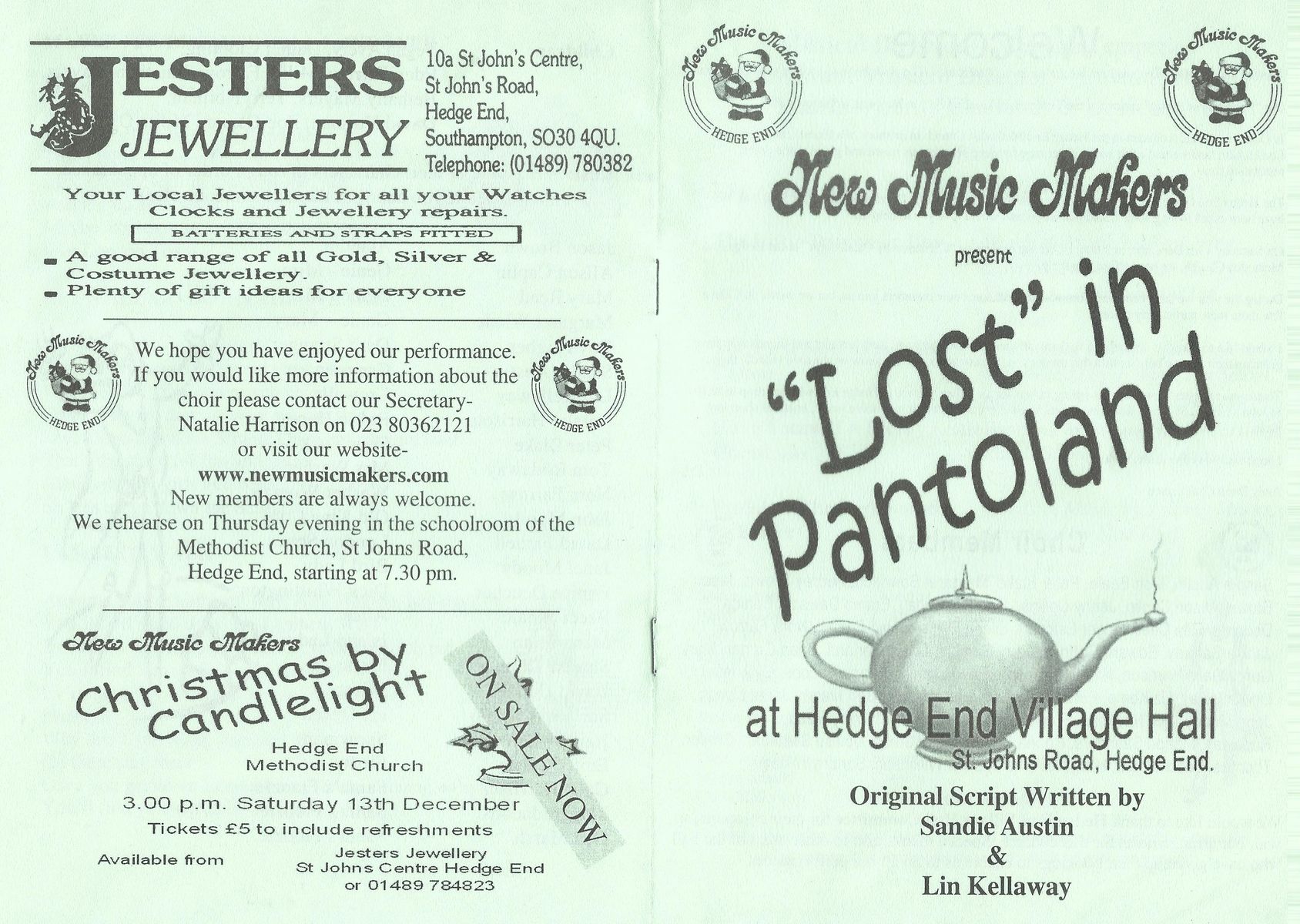 Rehearsals: Thursdays 7:30-9:45pm, Hedge End Methodist Church Hall