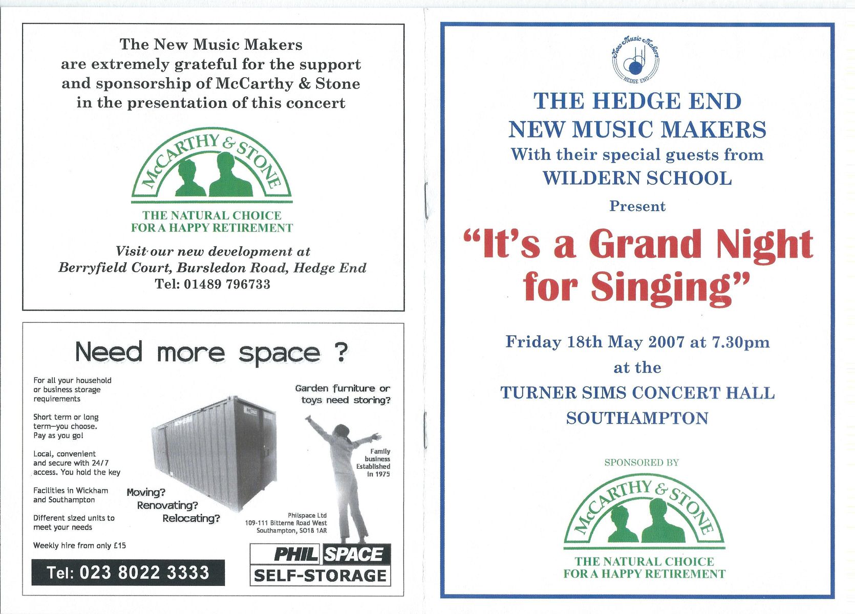 Rehearsals: Thursdays 7:30-9:45pm, Hedge End Methodist Church Hall