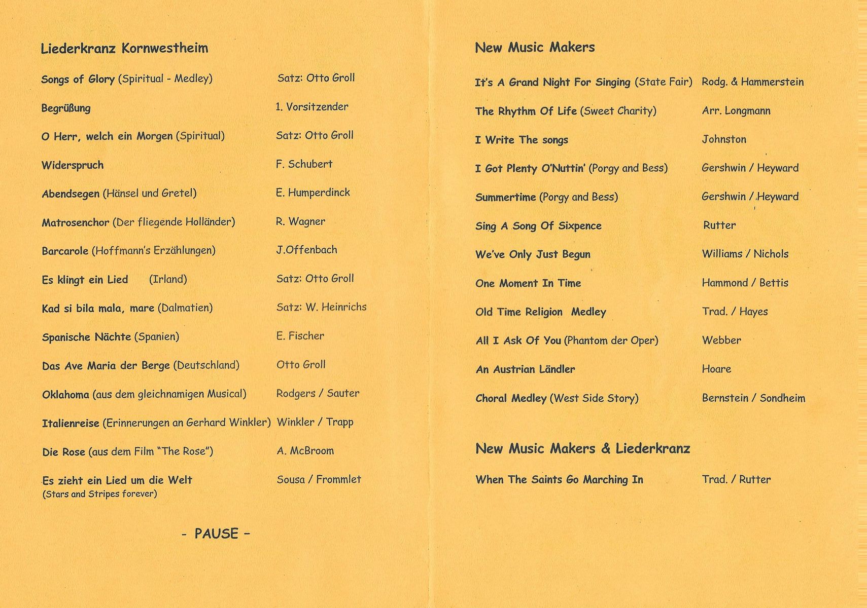 • New Music Makers Musical Repertoire