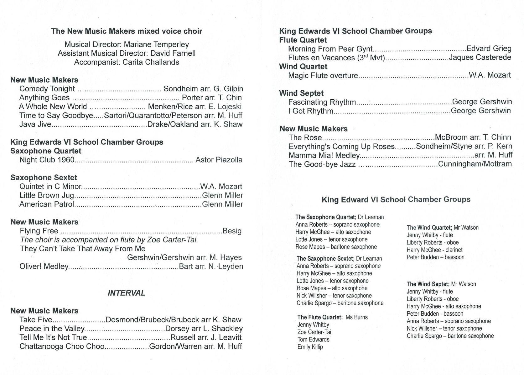 • New Music Makers Musical Repertoire