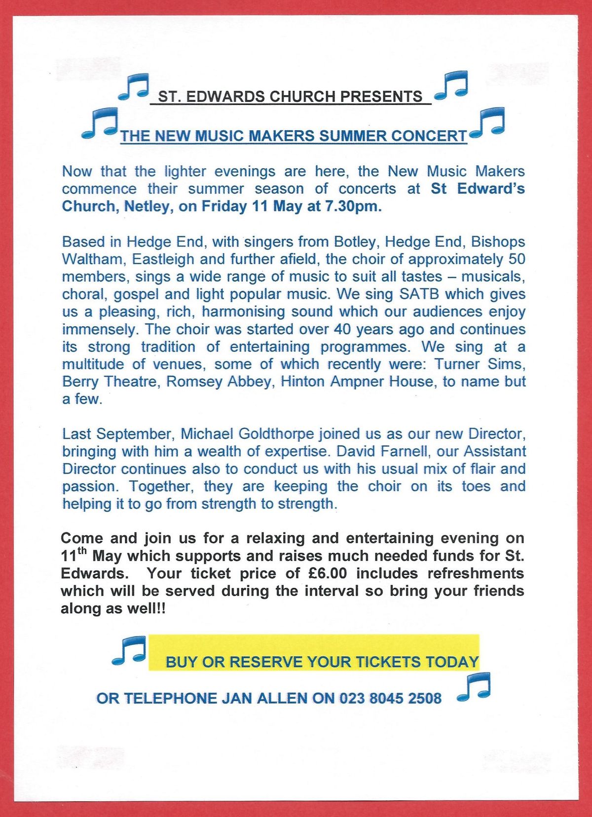 Rehearsals: Thursdays 7:30-9:45pm, Hedge End Methodist Church Hall