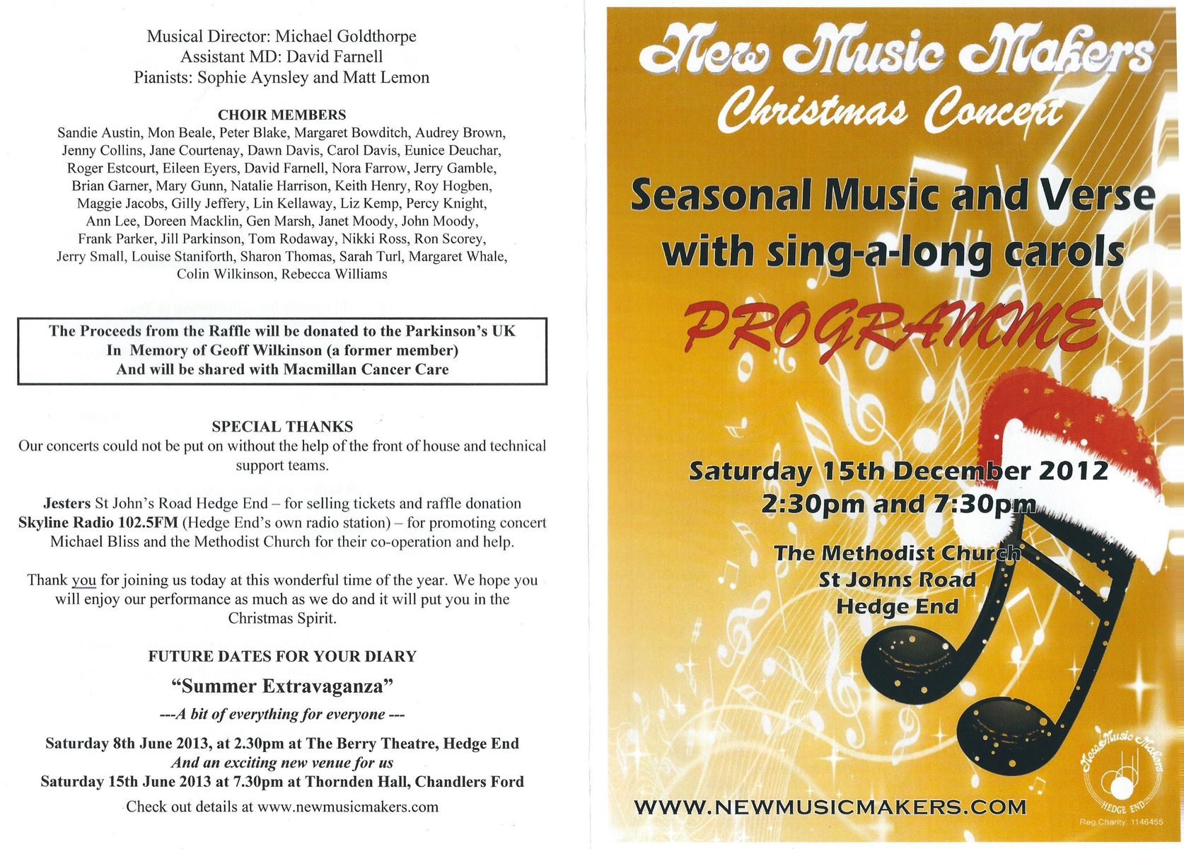 Rehearsals: Thursdays 7:30-9:45pm, Hedge End Methodist Church Hall