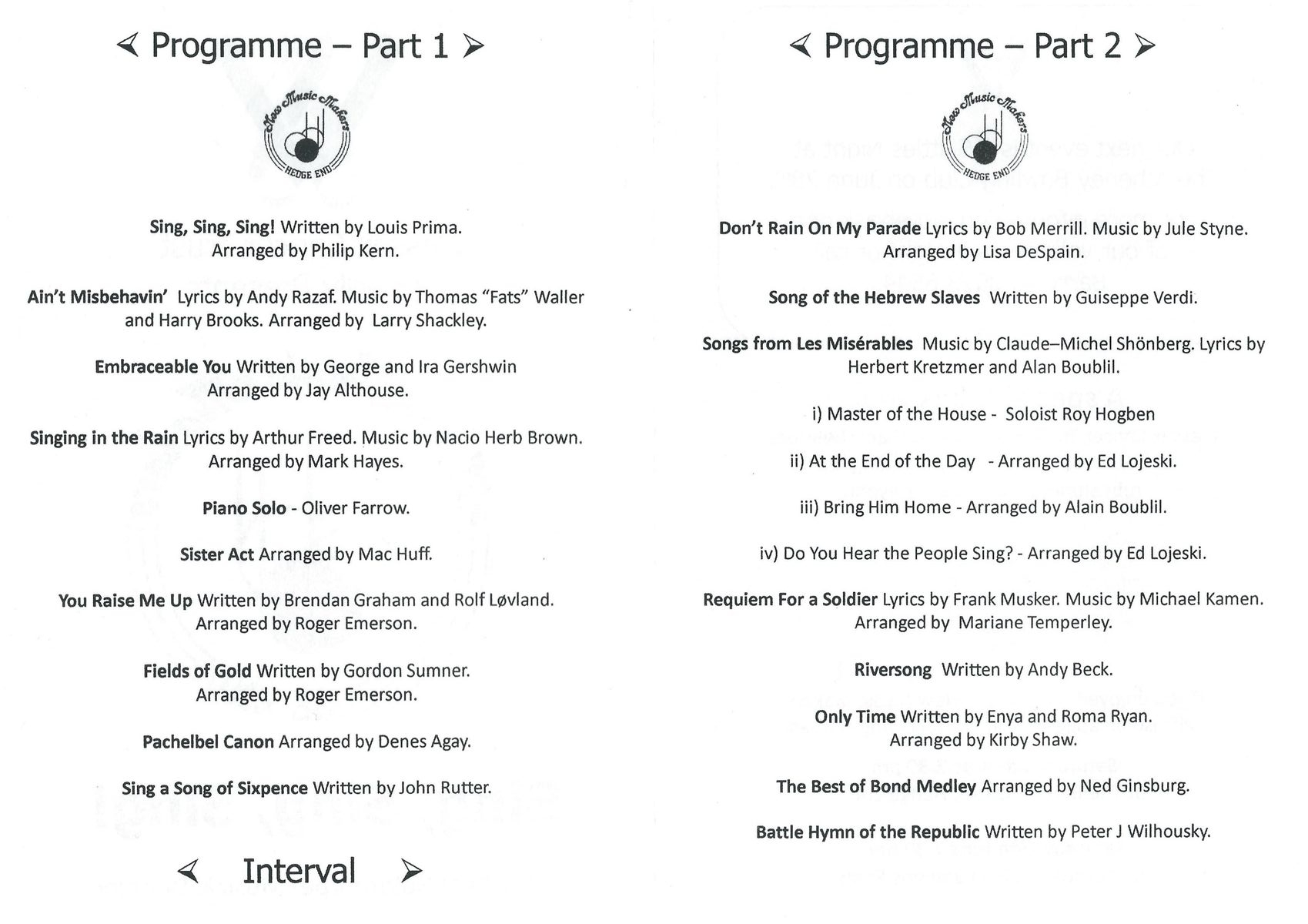 • New Music Makers Musical Repertoire