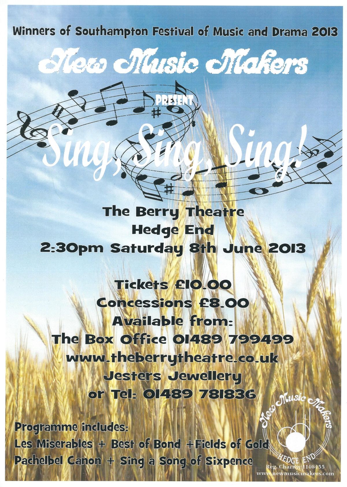 Rehearsals: Thursdays 7:30-9:45pm, Hedge End Methodist Church Hall