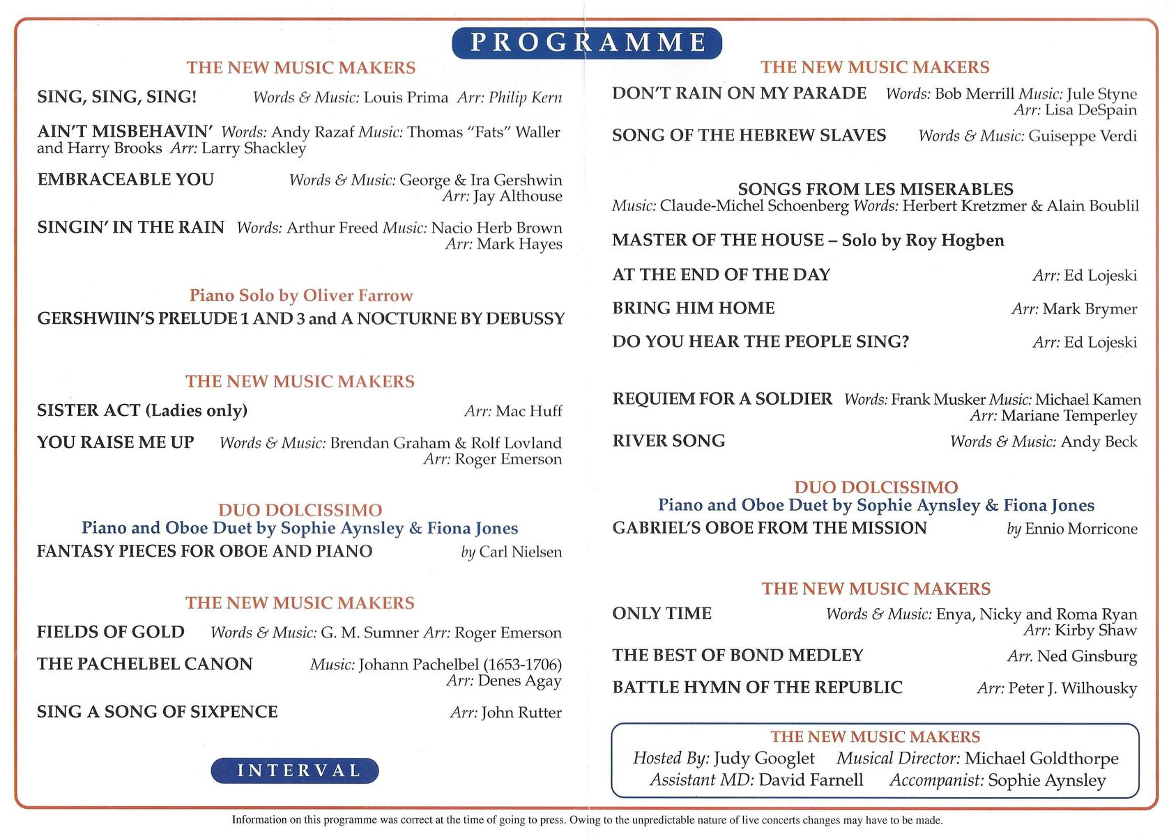 • New Music Makers Musical Repertoire