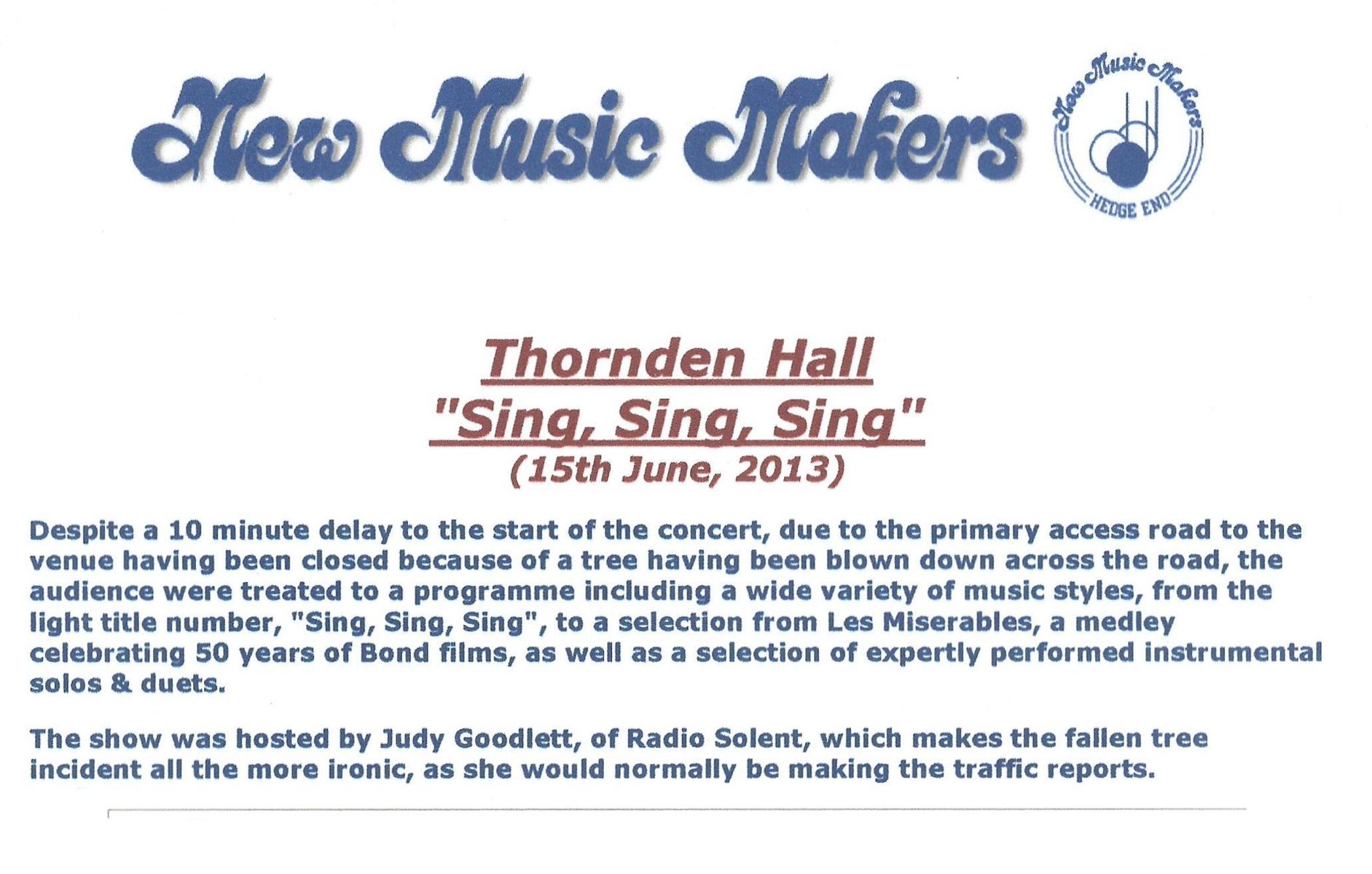 Rehearsals: Thursdays 7:30-9:45pm, Hedge End Methodist Church Hall